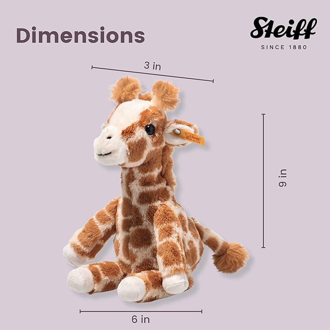 Steiff Gina Giraffe – Light Brown is a premium plush giraffe from the iconic German brand. Made of ultra-soft 100% polyester plush with high-quality synthetic filling, it comes with safety eyes, a stable posture, and Steiff’s stainless steel “Button in Ear”. With its light brown color and 23 cm size, this plush is perfect for gifting, cuddling, or collecting.