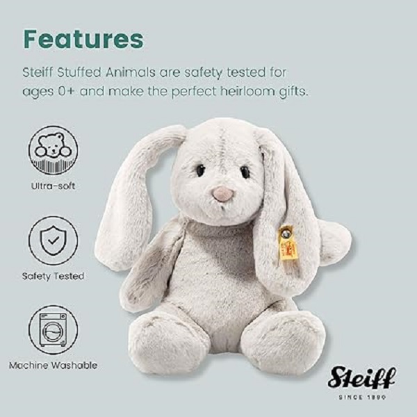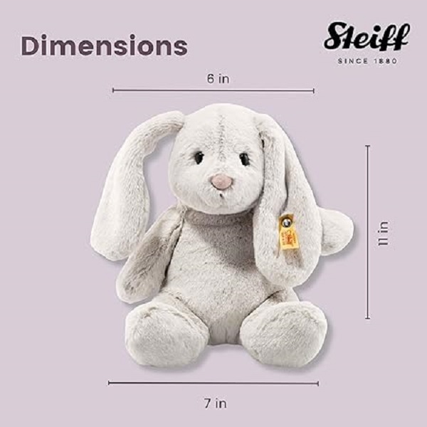 Steiff Hoppie Rabbit – Light Grey is a premium plush rabbit from the iconic German brand. Made of ultra-soft 100% polyester plush with high-quality synthetic filling, it comes with safety eyes, a stable posture, and Steiff’s stainless steel “Button in Ear”. With its light grey color and 28 cm size, this plush is perfect for cuddling, gifting, or displaying.