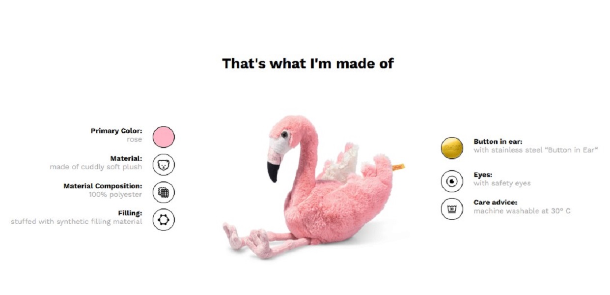 Steiff Jill Flamingo – Pink is a premium plush flamingo from the iconic German brand. Made of ultra-soft 100% polyester plush with high-quality synthetic filling, it comes with safety eyes, a stable posture, and Steiff’s stainless steel “Button in Ear”. With its bright pink color and 30 cm size, Jill Flamingo is a delightful gift or collectible.