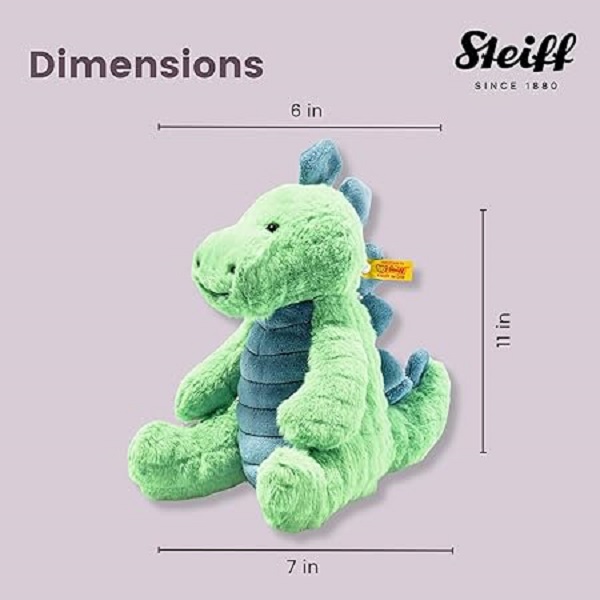 Steiff Spott Stegosaurus – Light Green is a premium plush dinosaur from the iconic German brand. Made of ultra-soft 100% polyester plush with high-quality synthetic filling, it comes with safety eyes, a stable posture, and Steiff’s stainless steel “Button in Ear”. With its light green color and 28 cm size, this plush is perfect for cuddling, gifting, or displaying.